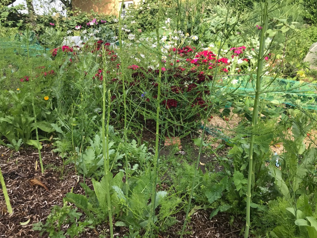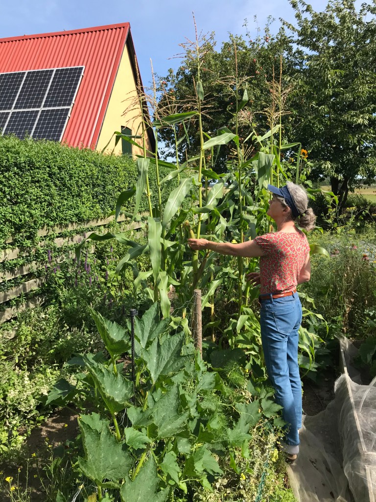 Det nærmeste bed bliver taget ud af sædskiftet og tilplantes med flerårige grøntsager og urter, der kan tåle at stå i delvis skygge, og konkurrere med kastanjen om vand og næring. I første omgang plantes evighedskål, takkeklap, flerårig blomkål og vinterkarse, så må vi se hvad der kan trives under de forhold.