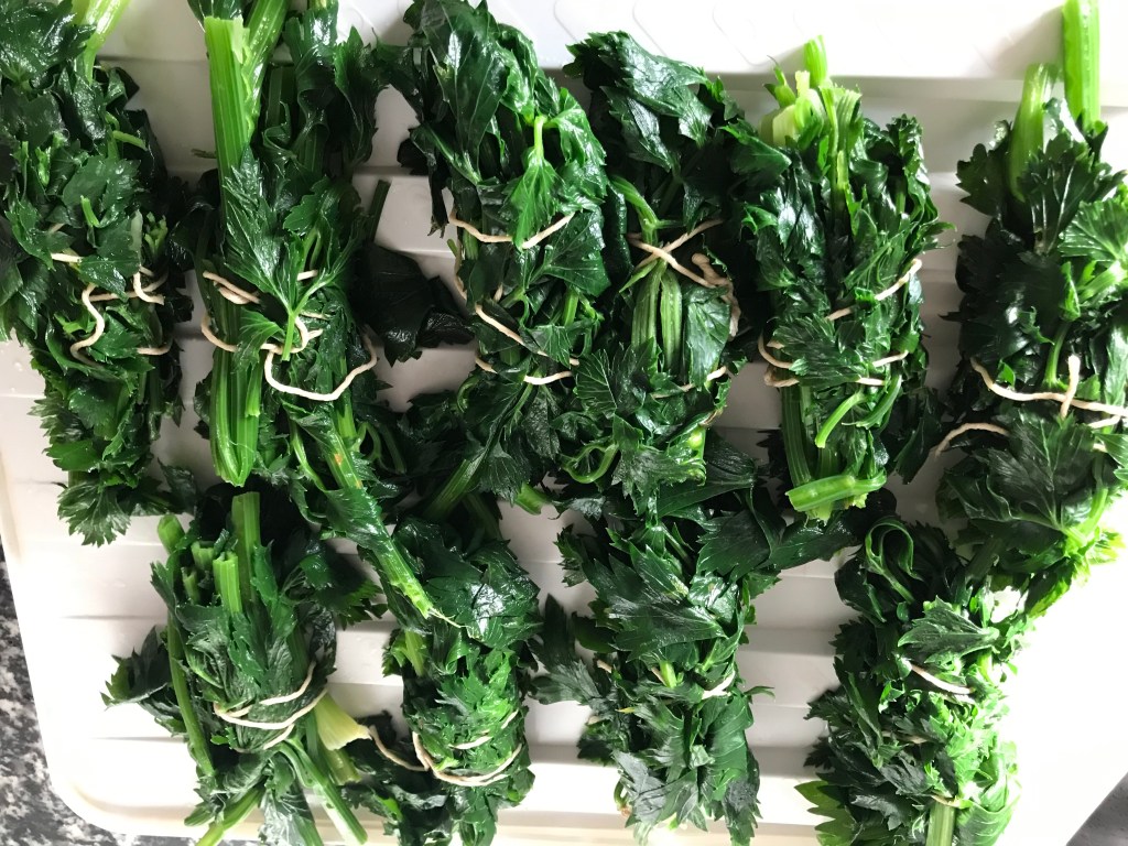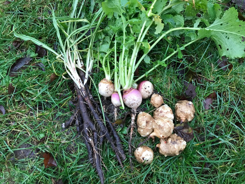 Såvel knolde som toppe var blevet meget fine i løbet af det lange, fugtige efterår. Jeg bruger derfor også begge dele – toppene ryger i fryseren efter en let blanchering, for senere at havne i gryden, som en god suppevisk.