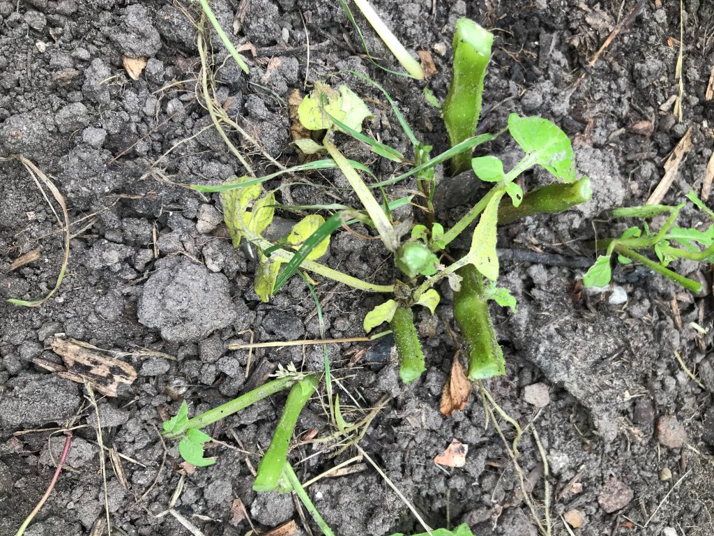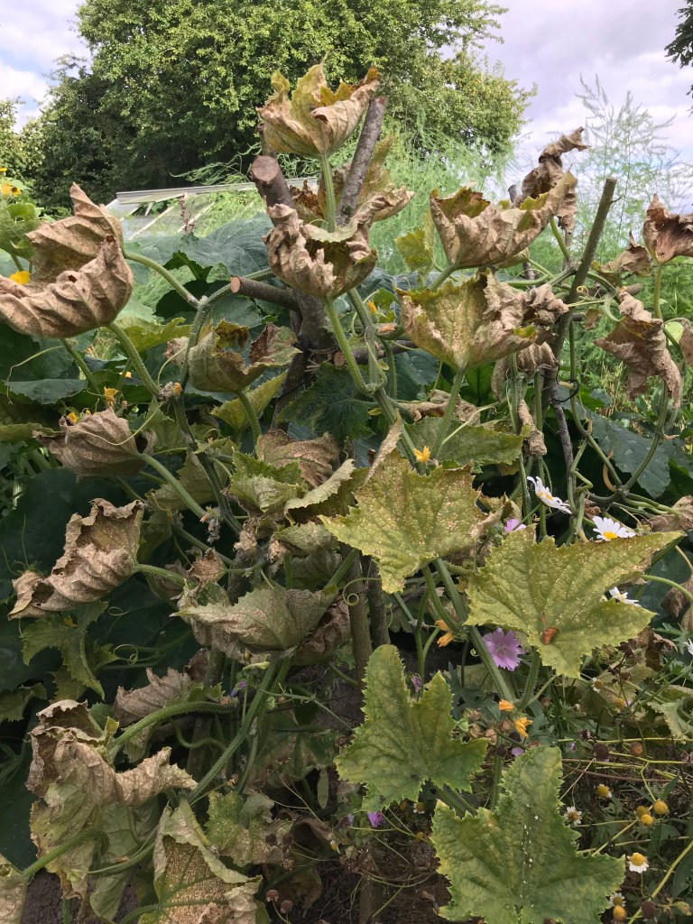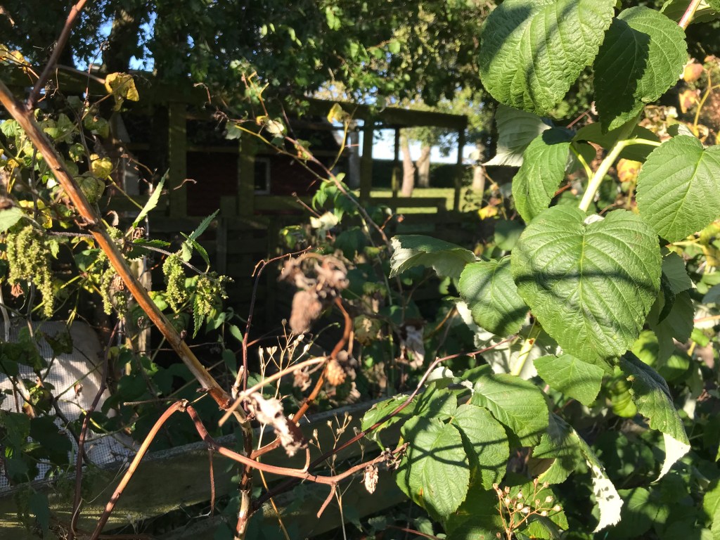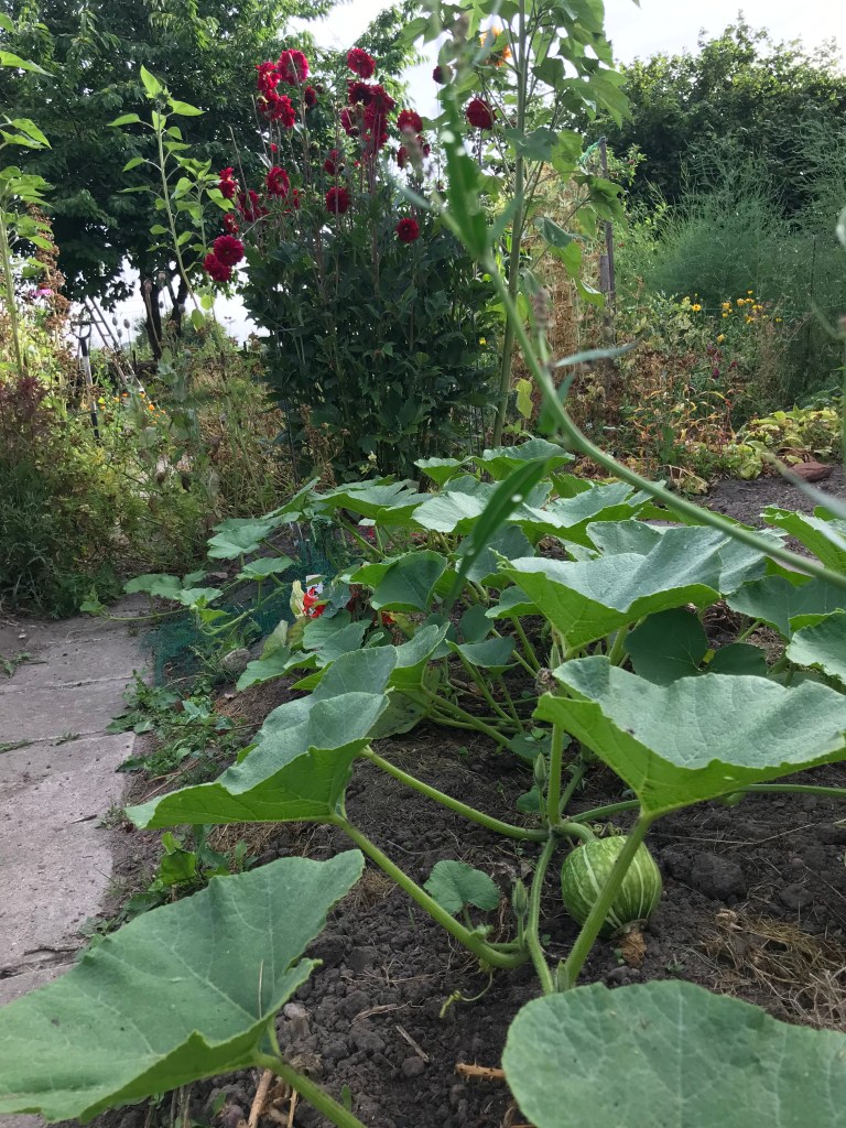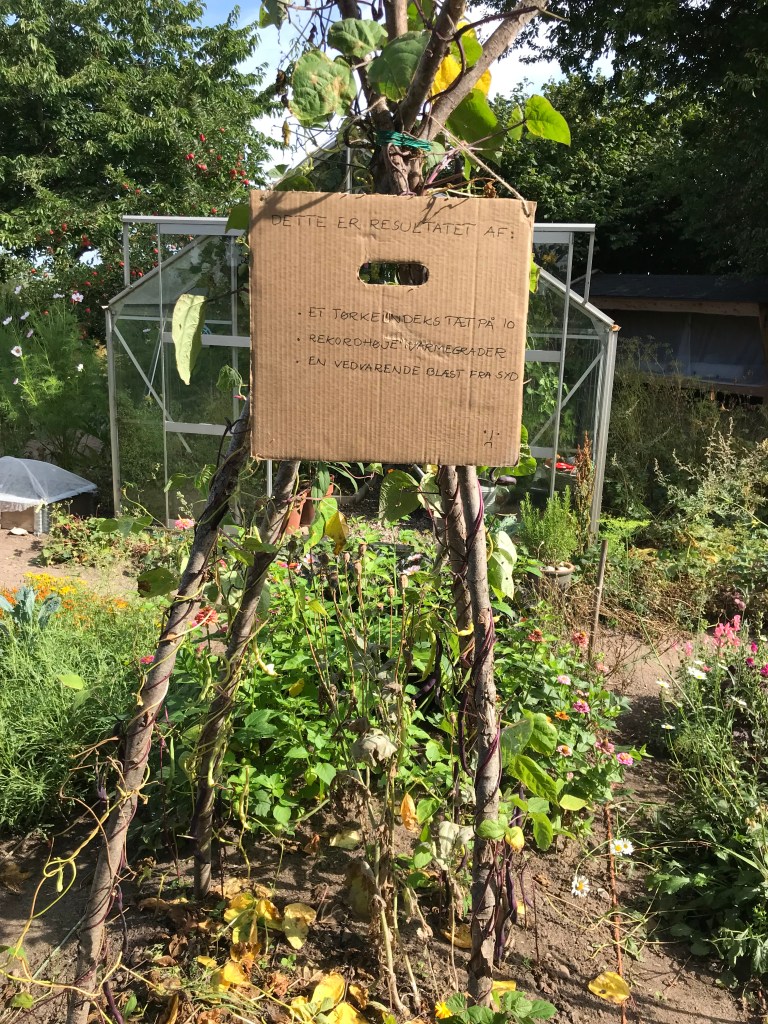 Haven har i juli måned været meget præget af tørken. De afgrøder der ellers ville gå til, har jeg vandet, fx de nyplantede jordbær. Ud over mangel på vand, har temperaturen været rekordhøj, og vinden fra syd har føltes som en føntørrer. Det gik hårdt ud over mine stangbønner, der nærmest blev ”brændt af”.