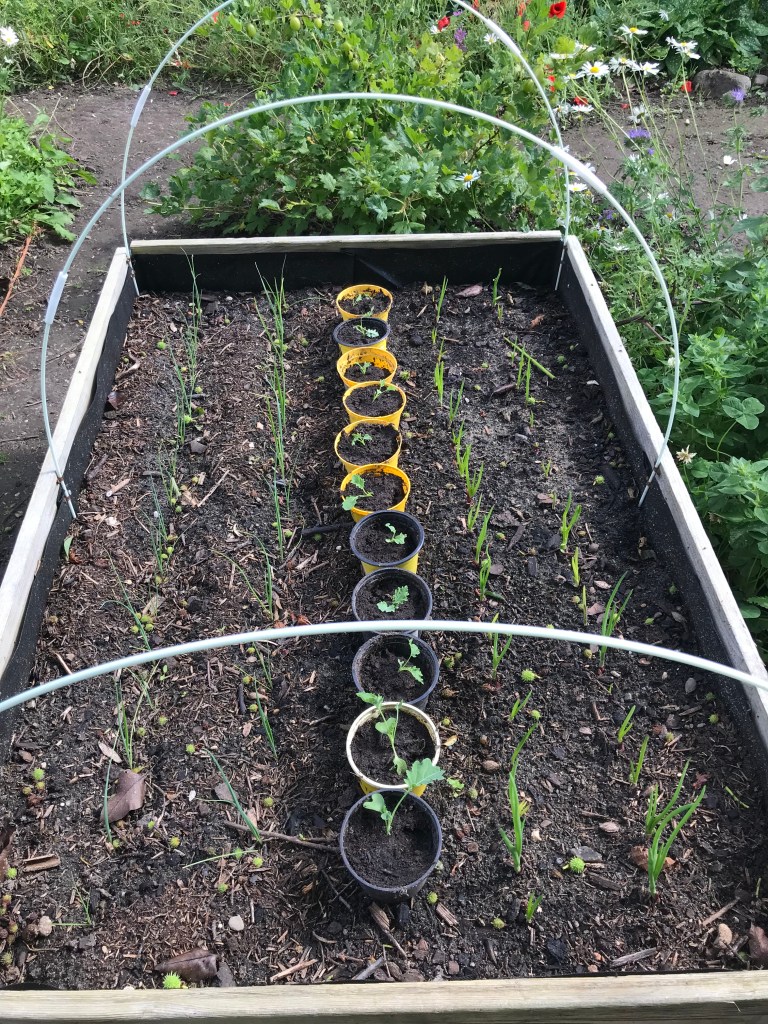 De forkultiverede kålplanter blev først udplantet sidst i maj, for at minimere angrebet af kålsommer-fugle i deres første flyveperiode – det gik fint!