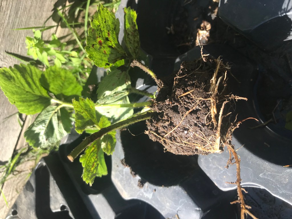 Veletablerede rødder De 2-årige planter er renset for visne blade og udløbere, der er tilført lidt kompost, og de er nu klar til at bære frugt for sidste gang i 2026.