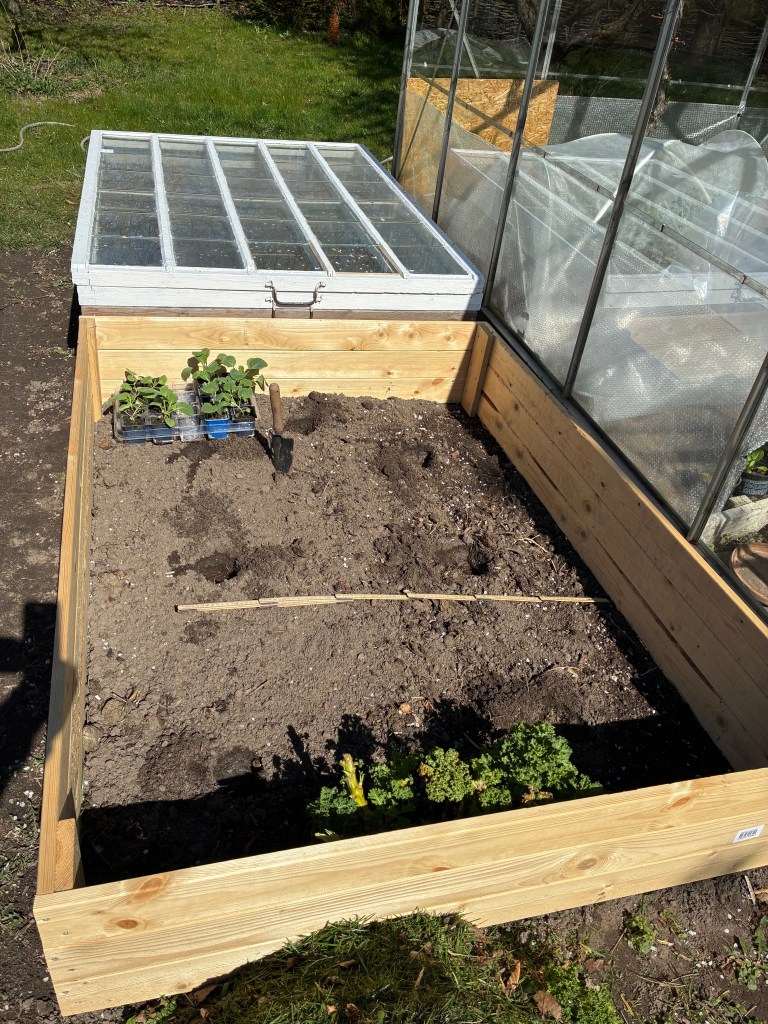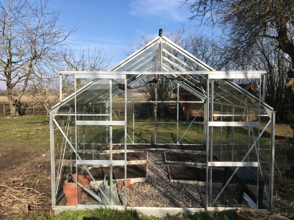 Nu er der for alvor ved at komme gang i haveaktiviteterne. Drivhuset blev gjort klar til indflytning i starten af måneden – der blev gødet, fyldt frisk jord i bedene, og skuret og skrubbet med brun sæbe og højtryksrenser.