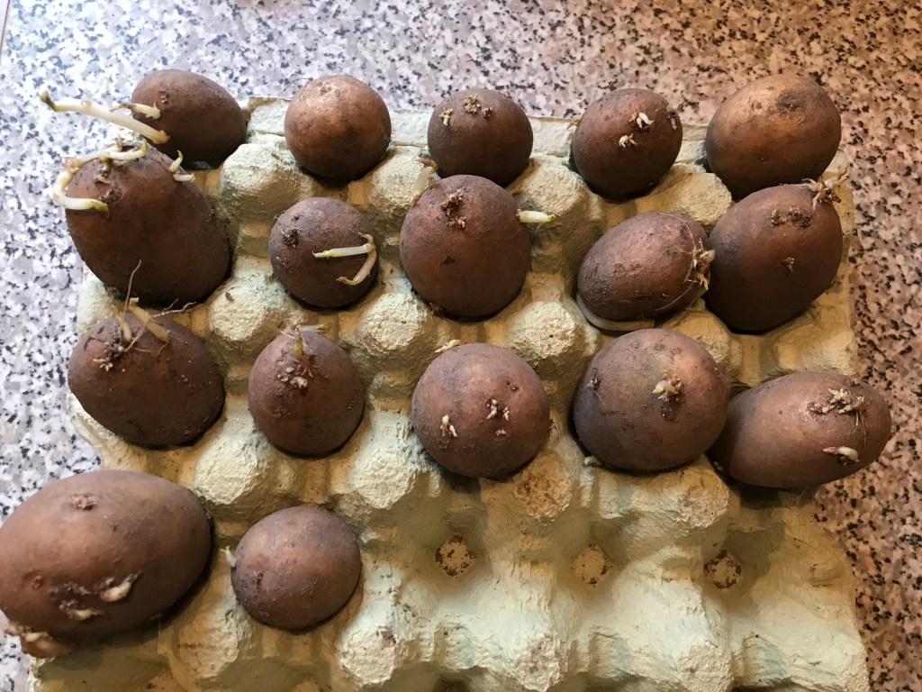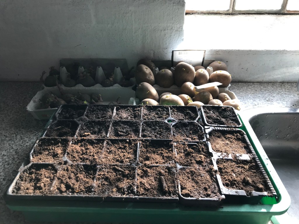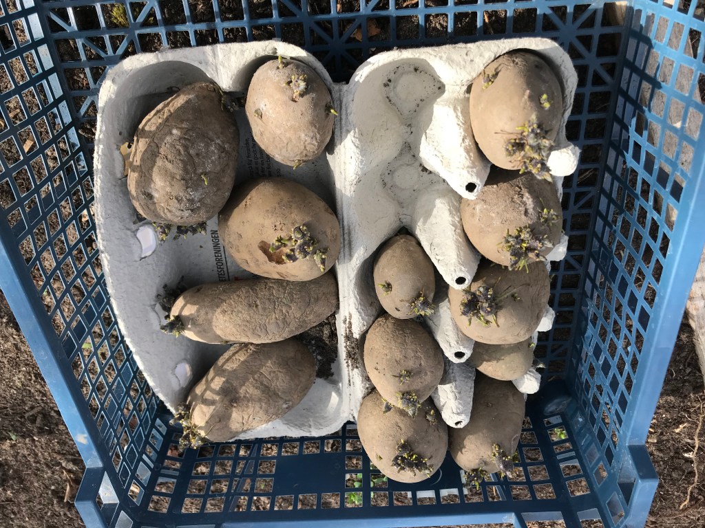 De tidlige kartofler er sat til spiring – jeg skal afprøve en ny tidlig sort i år (Anouk), da min yndlingskartoffel, Flavia, ikke har været til at opdrive de senere år. Solist fungerer ikke i min have.