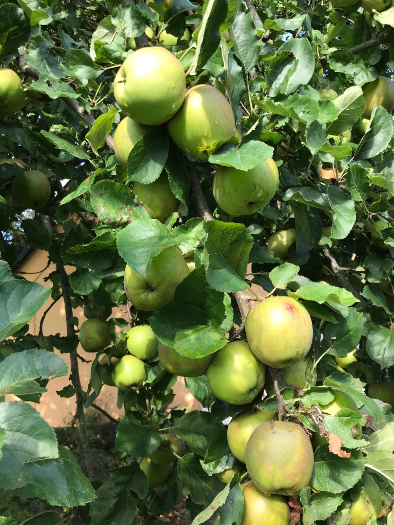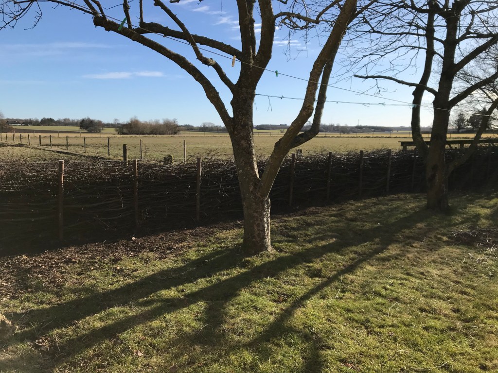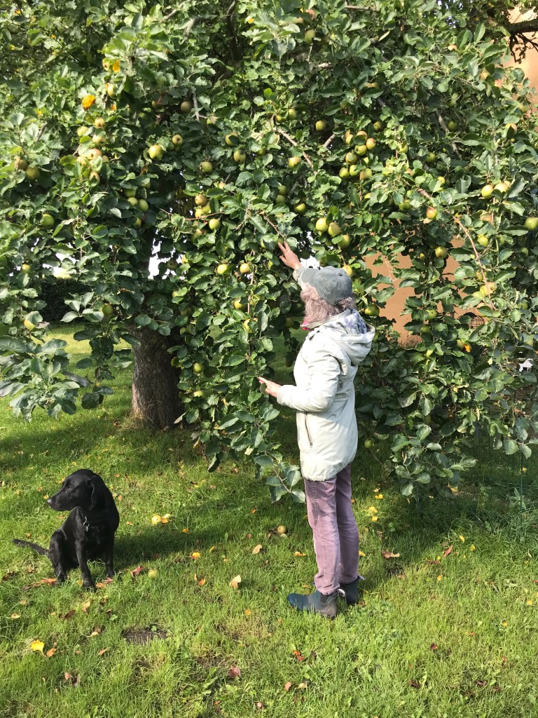I et hjørne af køkkenhaven står et stort, sundt, ”selvsået” kastanjetræ. Det er sandsynligvis et resultat af børns leg med efterårets brune, blanke nødder – træet er derfor selvfølgelig totalfredet, og haven må indrettes derefter…..