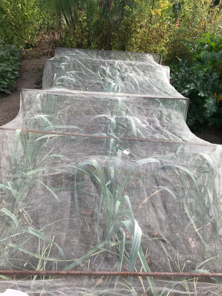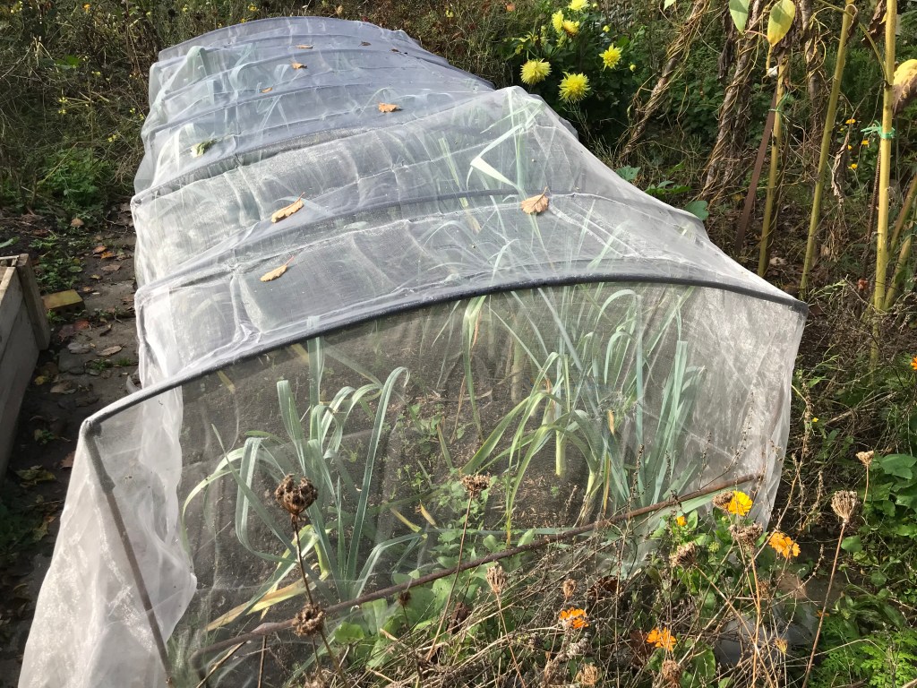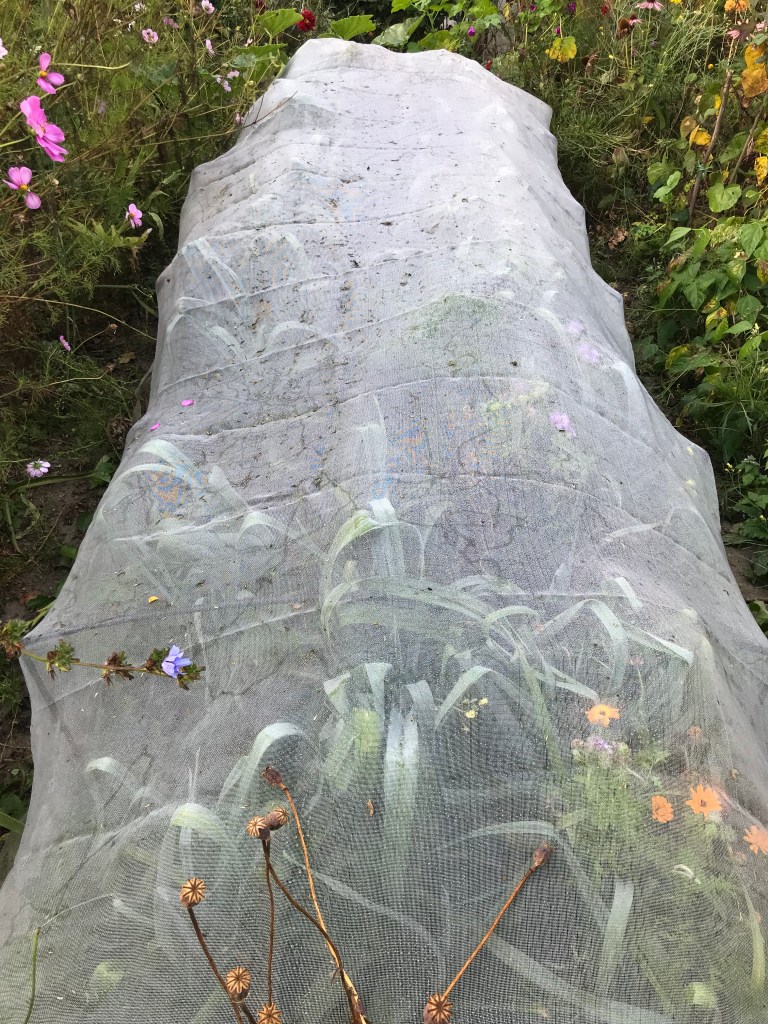 I april skrev jeg om den plagsomme løgminerflue, hvor 2. generation starter sin flyveperiode i midten af juli. Porrerne er derfor buret inde – jeg krydser fingre for at insektnettet holder tæt til slutningen af september, hvor fluerne er færdige med at lægge æg.