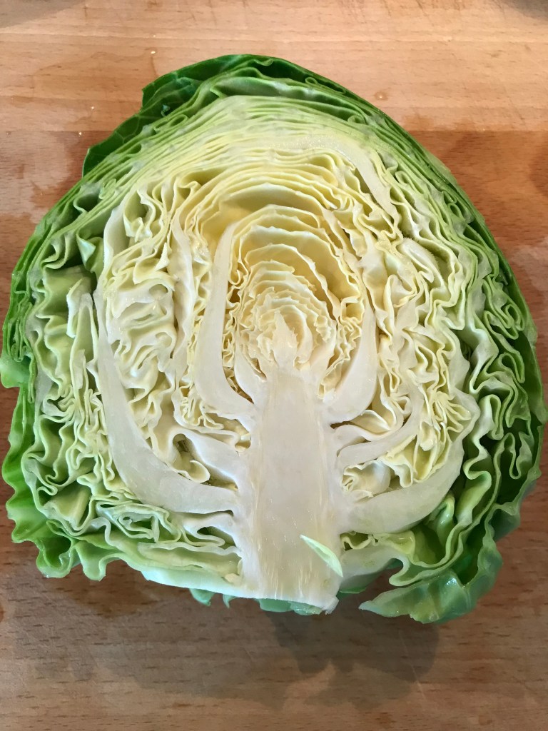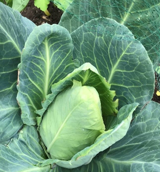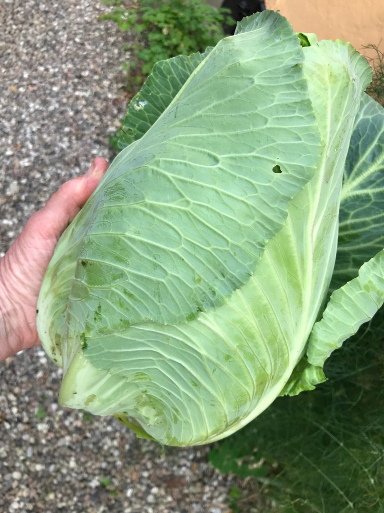 De første frø er sået i dag; sommerhvidkål, spidskål, artiskok og salat. Billedet er et skønt, sprødt spidskål, sået sidst i februar 2021 og høstet sidst i juni.