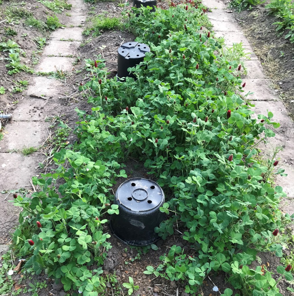 I sensommeren sidste år tilsåede jeg et bed med en grøntgødningsblanding, bestående af boghvede, honningurt og blodkløver. Væksten blev flot og tæt – et dejligt sted for dræbersneglen at lægge æg, til at sikre næste års afkom. Blodkløveren overvintrede og det gjorde de små snegle også – i hobetal….