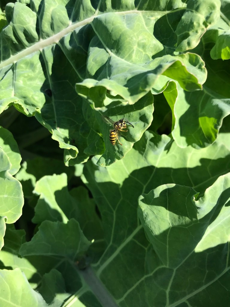 Korpset af de flyvende nyttedyr er i år udvidet med endnu et medlem – nemlig hvepsen, eller mere korrekt, gedehamsen. De har uvidende, men aktivt, deltaget i et forsøg, hvor jeg har afprøvet hvor galt det ville gå, ved at undlade overdækning af grønkål og palmekål med insektnet.