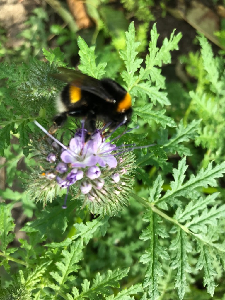 På den sidste solskinsdag i september, fik mine flyvende nyttedyr lejlighed til at fylde depoterne op i den blomstrende rocula, honningurt, m.m.