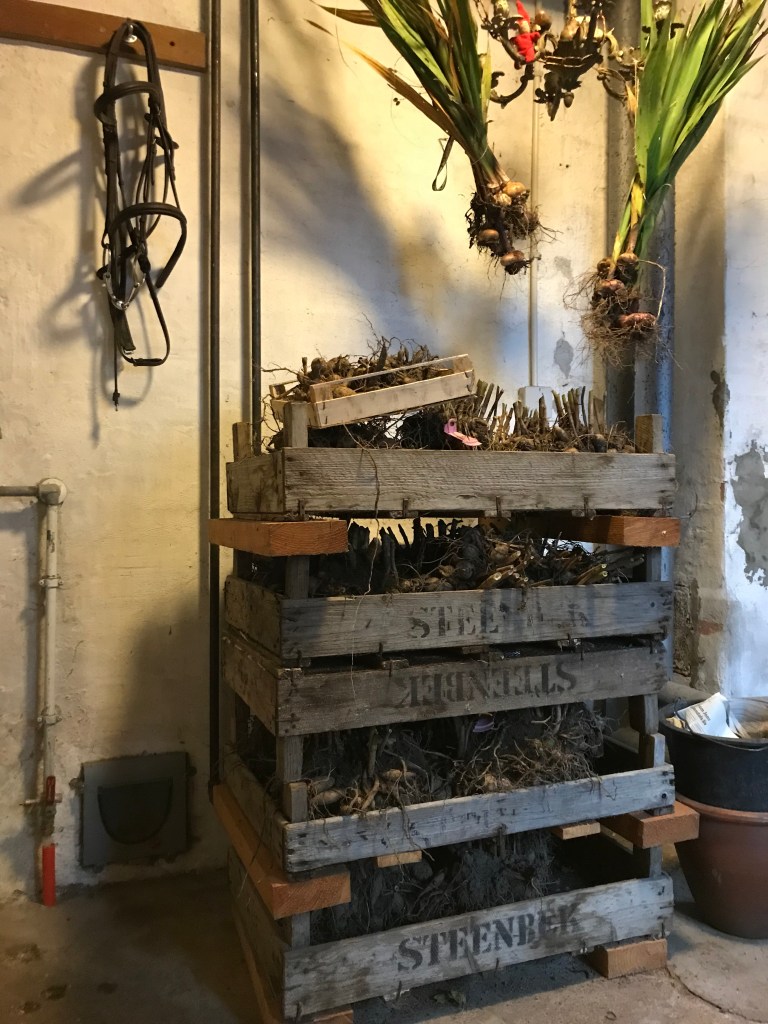 I juni anbefalede jeg at lade knoldene blive i jorden så længe som muligt, men dog at tage dem op før jordtemperaturen når ned på 3 °C.