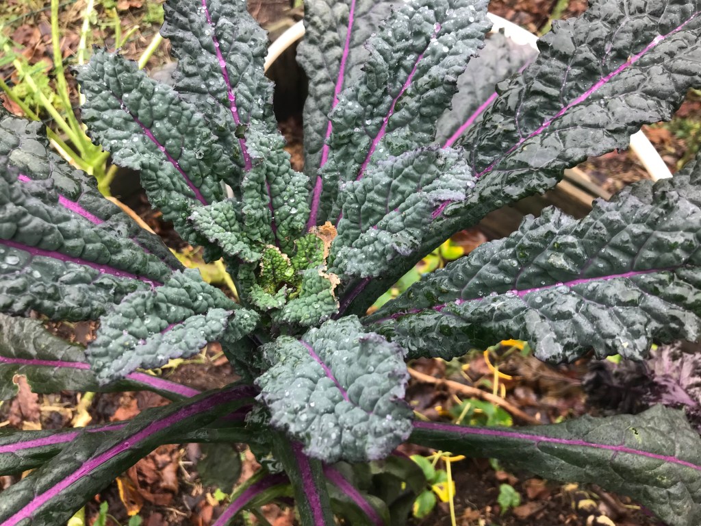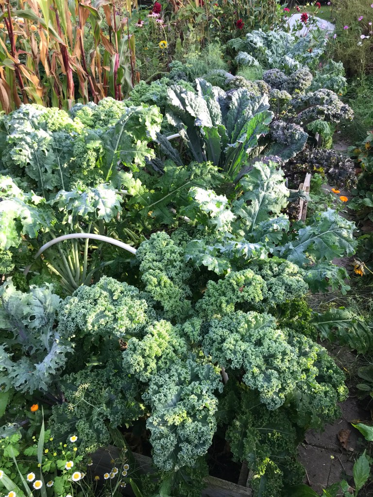 Jeg har to forskellige sorter af grønkål i år, Westland Winter, der blev sået tidligt, og Halvhøj moskruset Tiara, der blev sået sent. Sidstnævnte er en gammel sort der har indgået i MaxVeg projektet, der undersøgte grøntsager med gavnlige egenskaber for helbredet.