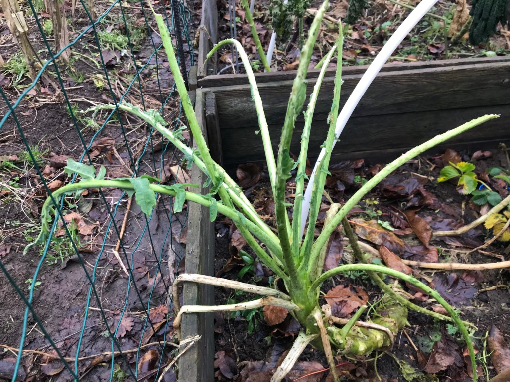 Der er nu kun få afgrøder at vente på; snart jordskokker, selleri og porrer der vokser lidt endnu, og så er der mit bed med Radisscio. De står store, flotte og grønne, men om de når at danne de eftertragte røde, faste, let bitre hoveder, det må jeg vente på i spænding……??